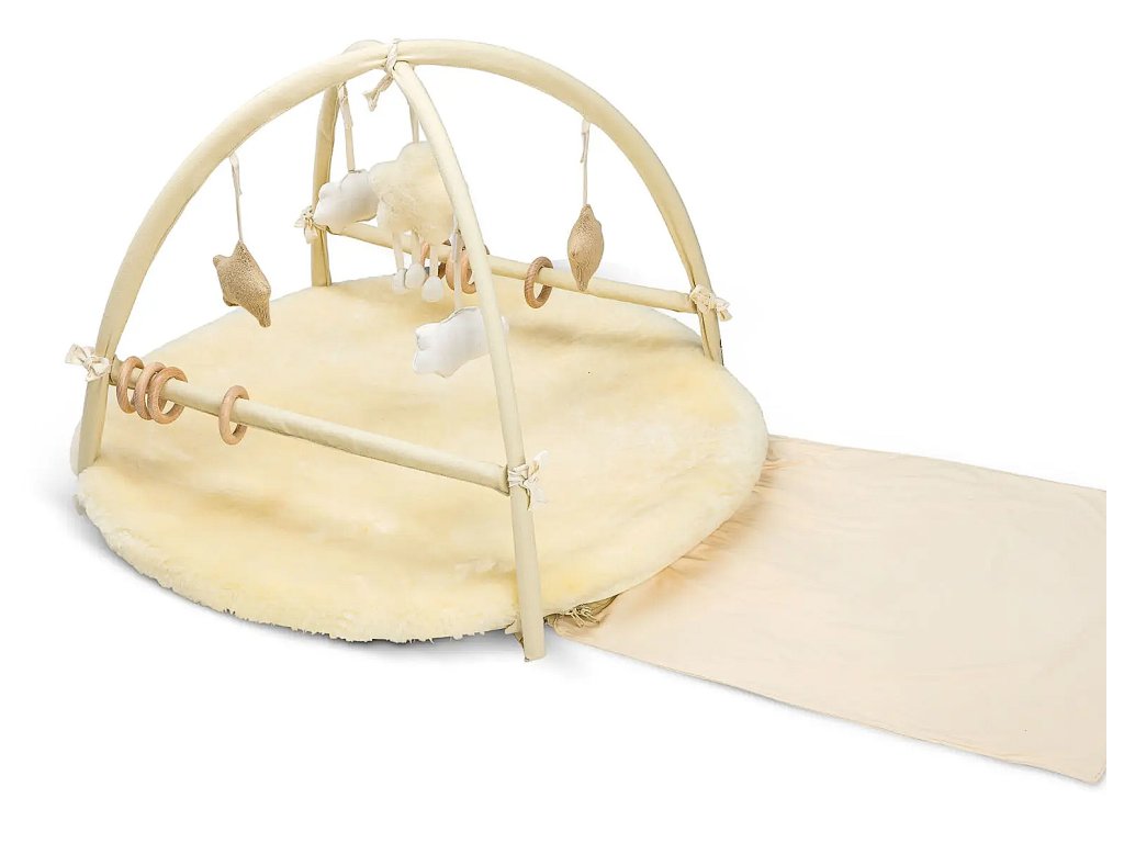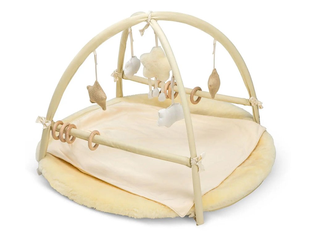 Odpinane wiszące zabawki wykonane z wełny merynosów, futra jagnięcego i bawełny z wypełnieniem kapok/bawełna (3 gwiazdki i 2 chmurki)